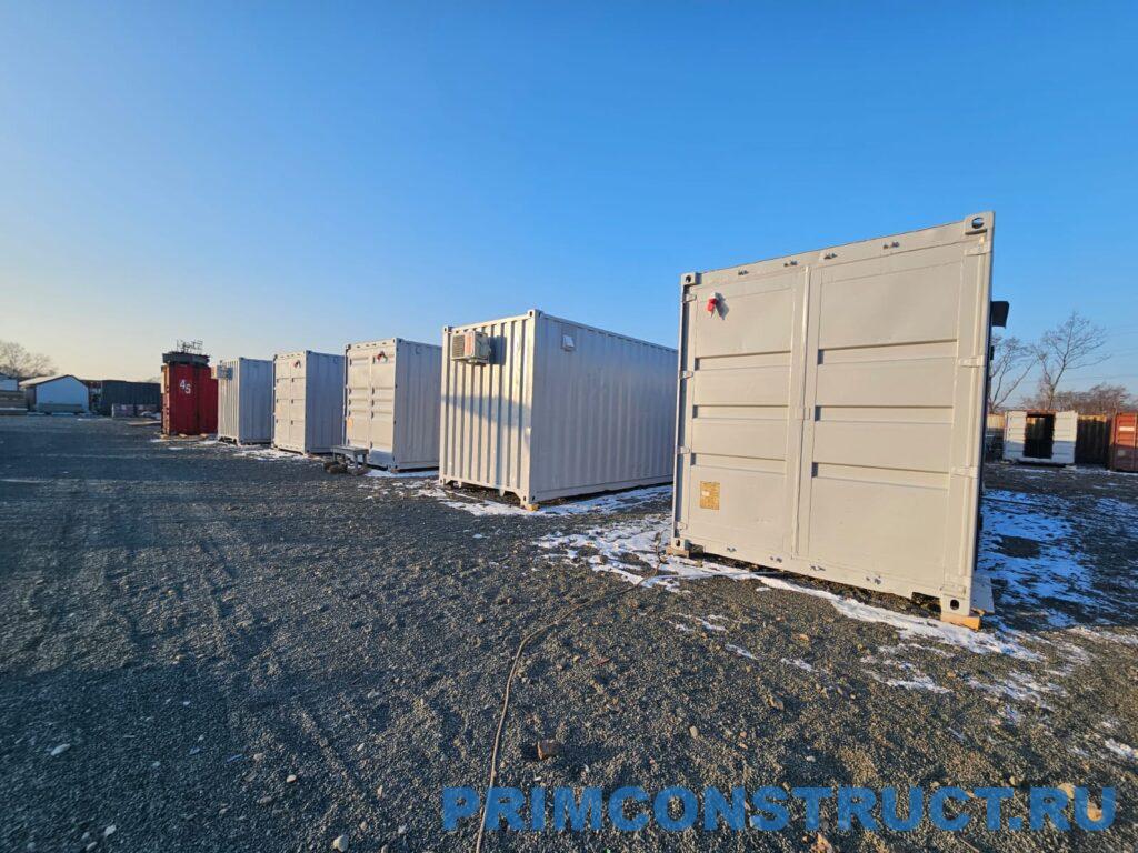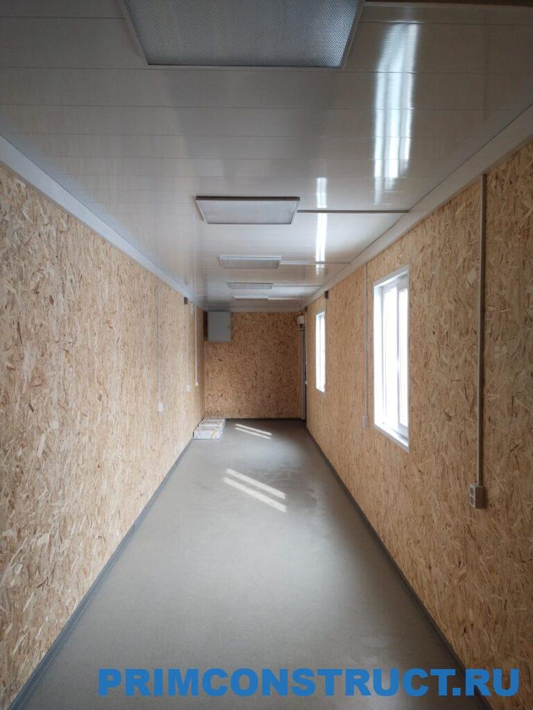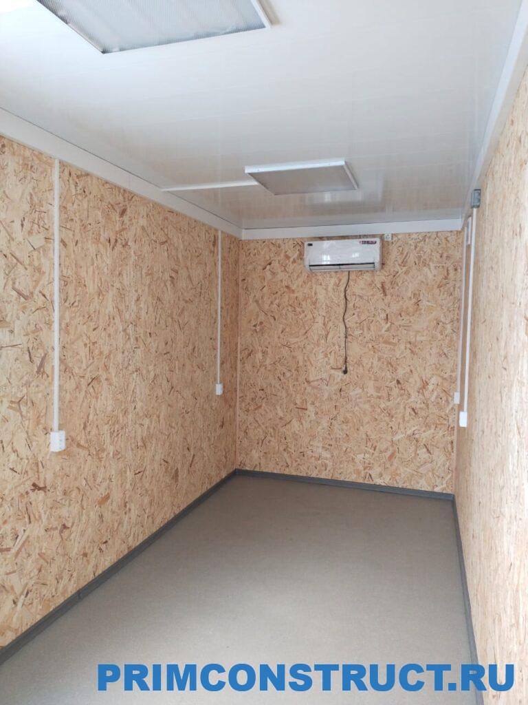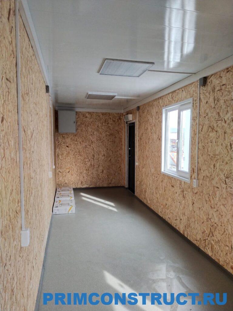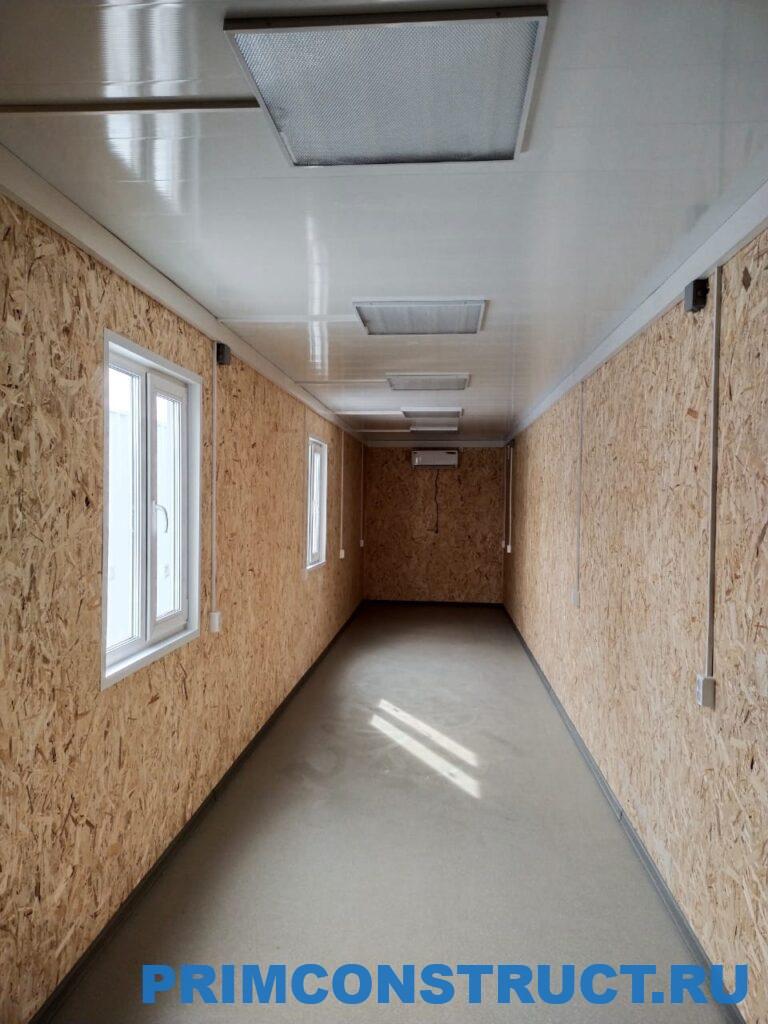 5 бытовых модулей на базе 40 футового контейнера — подключение эл питания; внутренняя отделка — линолеум, освещение, осб панели, кондиционеры и конвекторы, пластиковые окна, металлическая дверь.