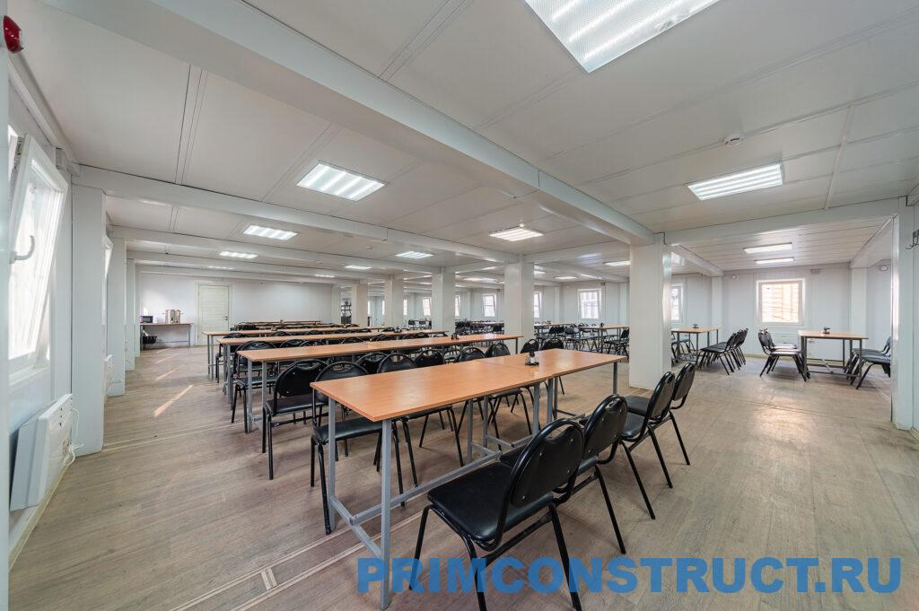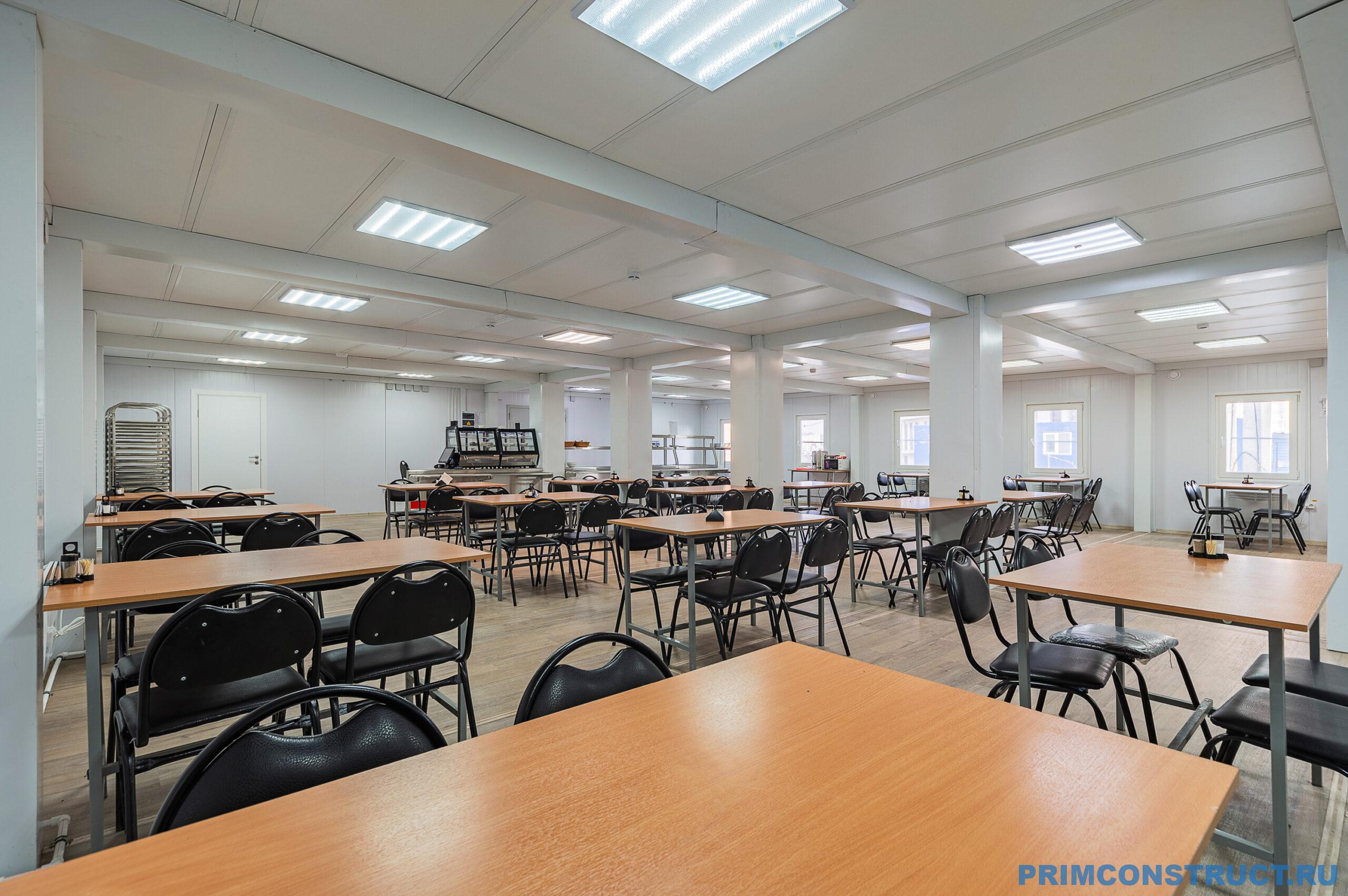Описание проекта: Столовая полного цикла (с приготовлением пищи) для строителей Музейно-театрального комплекса федерального значения. Столовая на базе модулей транспаков.