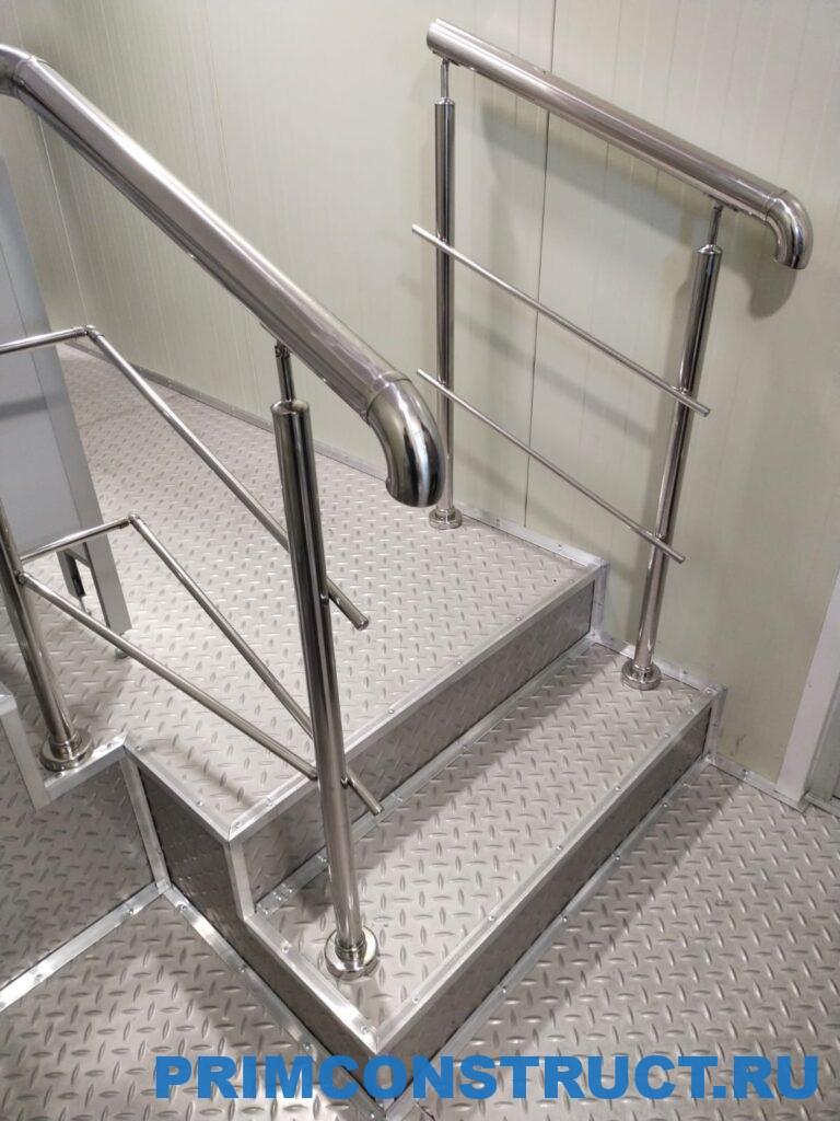 Пол, сантехника, перилла — нержавеющая сталь, сенсорные смесители. Противопожарная дверь. Доставка собственным транспортом.
